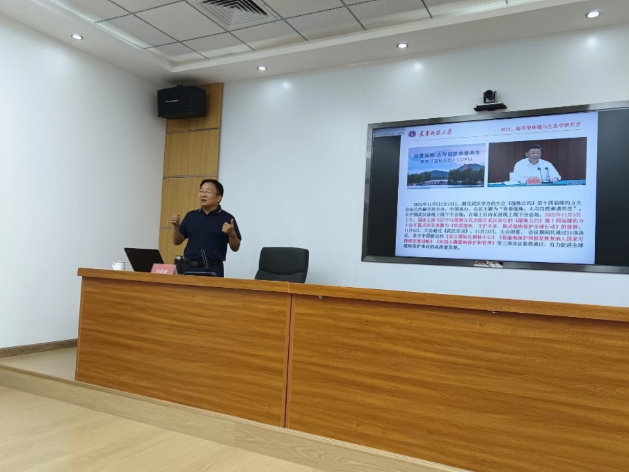 仪式结束后,刘宪斌教授作了题为“滨海湿地生态修复的理论与实践”专题报告。与会人员共同参观了海洋地质调查所海洋实验室和河北沧州平原区地下水与地面沉降国家野外科学观测研究站。