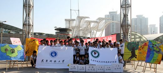 这些年轻人都是我校海洋学院环境保护协会的同学,他们为迎接“六五”世界环境日,倡导保护环境人人有责,携手同心共创绿色生活的精神,在泰达环境保护协会的支持下,特意组织了这次以做“一分钟志愿者”为形式的公益环保宣传活动。