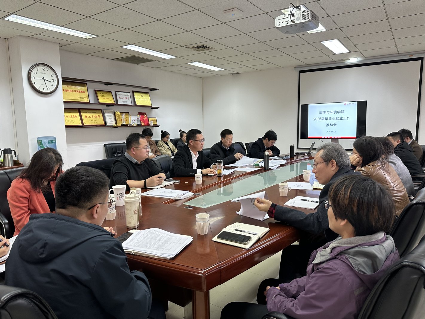 为进一步扎实做好2025届毕业生就业工作,抢抓春季促就业攻坚期,加力加快推进学院毕业生就业工作进程,3月11日下午,海洋与环境学院组织召开2025届毕业生就业工作推进会,学院领导班子全体成员、学办主任、院办主任、各系主任、专业教师代表、毕业生辅导员参加会议。