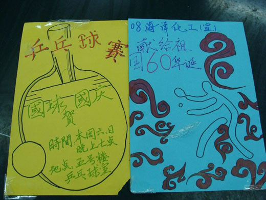 新学期伊始,为庆祝祖国母亲60周年大庆,海洋学院080521与080522班开展了“迎国庆,乒乓球比赛”。同学们都积极参加,班导师助理郭坤鹏也参加这次活动。