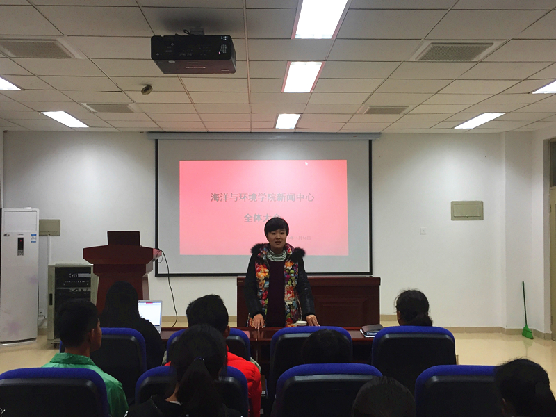 为促进宣传队伍建设,强化制度化专业化管理,海洋与环境学院新闻中心于11月16日中午在滨海中校区6号楼131会议室召开了纳新后全体会,学院团委书记杜颖华老师莅临现场,新闻中心主任田珺老师及全体成员到会参加。