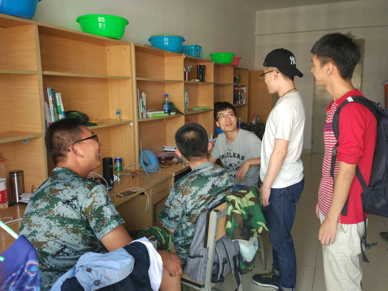 走访中,新生见到学长学姐来看望他们都非常热情,尤其是看到他们胸前闪闪发光的“共产党员”徽章更是十分羡慕,都主动与党员们沟通他们军训中的趣事,并积极寻问关于入党、学习和生活中的各类问题。支部党员们则主要向学弟学妹们介绍了学院及本专业的基本情况,用自己的亲身经历激发新生们对专业的学习热情。同时,党员们也对安全防范、入党条件及流程、社团活动、考研就业等方面耐心细致地进行了讲解和指导。面对面的交流,迅速拉近了党员和新生的距离,宿舍交流气氛轻松热烈,欢笑声不断。