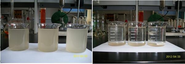 图1 浊度为211NTU的混浊无机胶体水溶液,经过无机矿物絮凝剂处理后清澈透明,浊度下降至2.12NTU