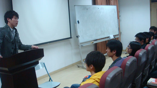 “我们团总支就是一个温馨的大家庭,09级新成员就是我们这个大家里的新鲜血液。”伴随着副书记的温暖的话语我们的例会顺利开始。首先,杜老师发表了重要讲话,讲述了团总支的光辉历程。她还安排了本学期的各项工作内容,同时教导我们作为团总支的学生干部要把本职工作做好,积极带领全学院的学生一起活动,让团总支这个集体变得更优秀。原副书记于涛学长将自己的工作经验倾囊相授,建议我们在不影响学习的情况下努力工作,为学院争得荣誉。随后,副书记戴易龙再次强调团总支的理念——“We are a family”,希望每个成员在完成工作和学业的基础上,锻炼自己的能力,和其他成员成为朋友,共同营造一个和谐温馨的大家庭。