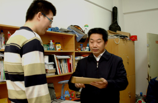 12月7日下午,海洋学院工会主席周桓老师把海洋学院62名教工捐出的共计6260元捐款亲手交给了李冠荣同学,学院刘文岭书记、魏皓院长、李冠荣的班主任宋东辉老师、学工办主任杜颖华老师还一起到宿舍看望了李冠荣同学,详细询问了他休养的情况和当前学业情况。