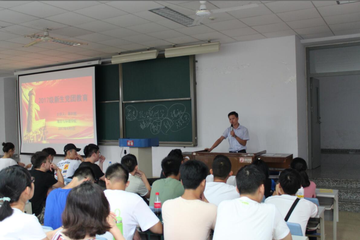 除此之外,我院于9月5日下午在图书馆十一阶梯教室对2017级新生进行了一次党团教育,由组织员蒋华朋老师主讲。会上,蒋老师向17级新生展示了中国共产党从建党以来走过的光辉历程,以此鼓励大家努力学习,全面发展,积极向党组织靠拢,争取早日成为一名中共党员。随后,他还详细阐述了发展党员的细则与要求。讲座过程中,蒋老师时时与同学们互动,气氛十分活跃。同学们都听得很认真,不时做笔记,并拍下重点内容。