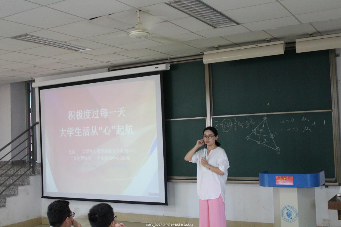 9月6日上午,学院邀请心理咨询中心王荔老师在图书馆十四阶梯教室为新生们进行了一场生动的心理健康教育讲座。她从大学学习生活的实际情况出发,介绍了导致大学生心理健康问题的原因,并根据大学生的身心特点,认真教授新生应激调适的方法,教育新生学会调节学习与心理之间的关系。为了能够更好地帮助同学们保持健康的心理状态,王老师在黑板上留下了自己的联系方式,方便同学们在遇到问题时及时进行咨询。