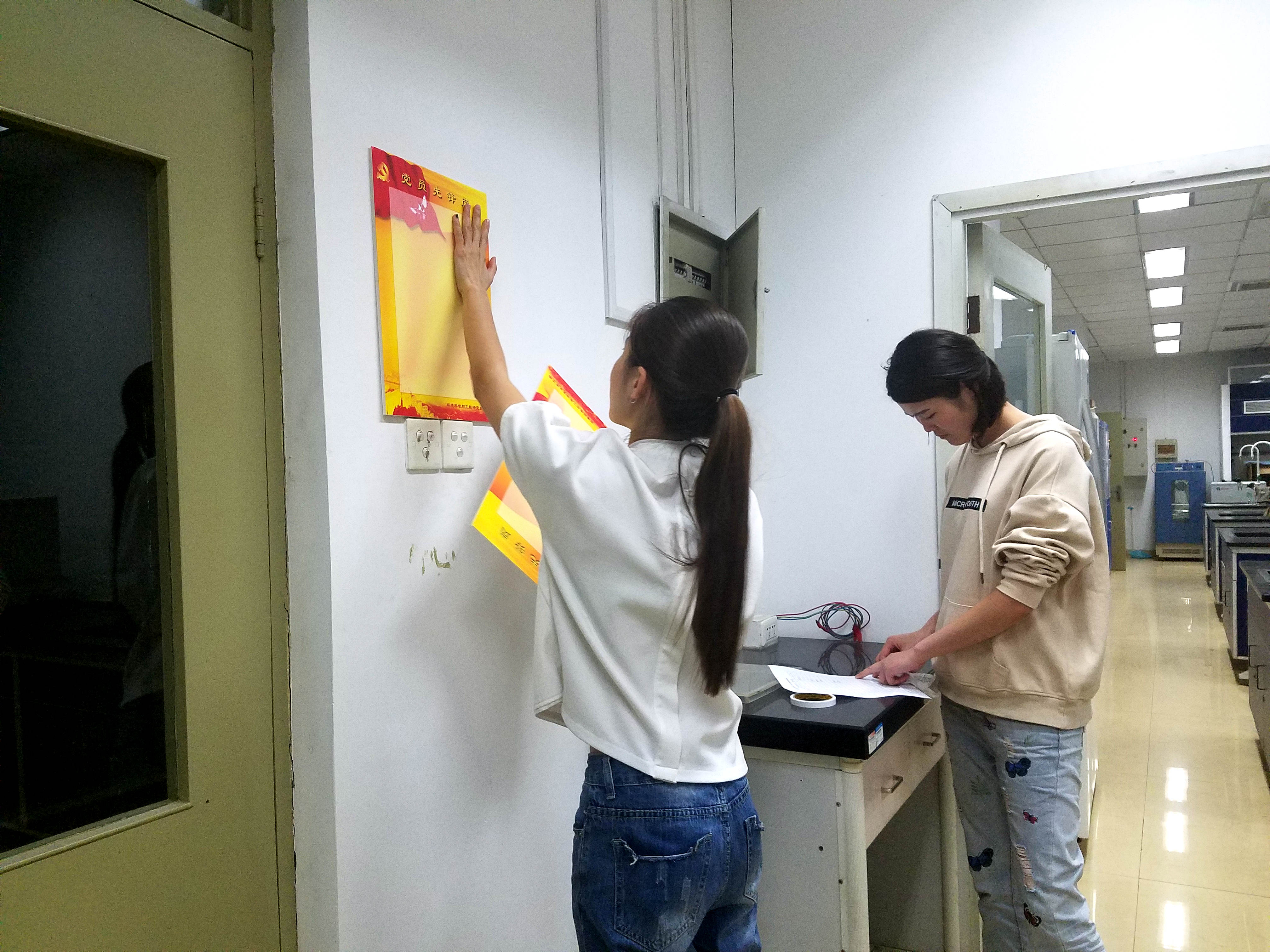 实验室作为研究生开展科研工作的主阵地,其保持安全稳定是非常必要的。为此,支部在前期学习习近平总书记知青岁月的基础上,制作了实验室安全党员先锋岗标牌,支部党员分成几个小组,每个小组负责实验室的一个楼层,小组成员分工明确,团结协作,在各实验室和兄弟支部的积极配合下将实验室安全党员先锋岗标牌张贴于实验室醒目处。张贴标牌后,支部各位党员将分别作为实验室安全检查员负责自己所在实验室的安全保障工作,每天坚持做好实验室安全检查工作,并带动实验室全体同学共同做好实验室安全保障工作。