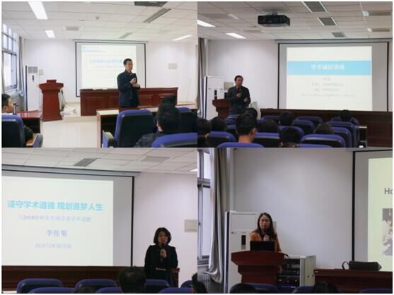 活动中共举行了四场讲座,分别由院长邓天龙教授、副院长李桂菊教授、副院长隋丽英教授以及曾明副教授主讲。各位老师分别从研究生学术规范若干思考、学术论文写作规范、科技工作者道德行为自律规范等方面说明了学术道德失信的危害,并主张研究生应认真遵守科技工作者行为道德规范。同时,老师们向大家详细讲解了研究生论文写作中如何正确使用和标注引文、参考文献等学术规范。同学们在听取各位老师的指导之后受益匪浅,为将来更好的进行科学研究和论文写作奠定了基础。