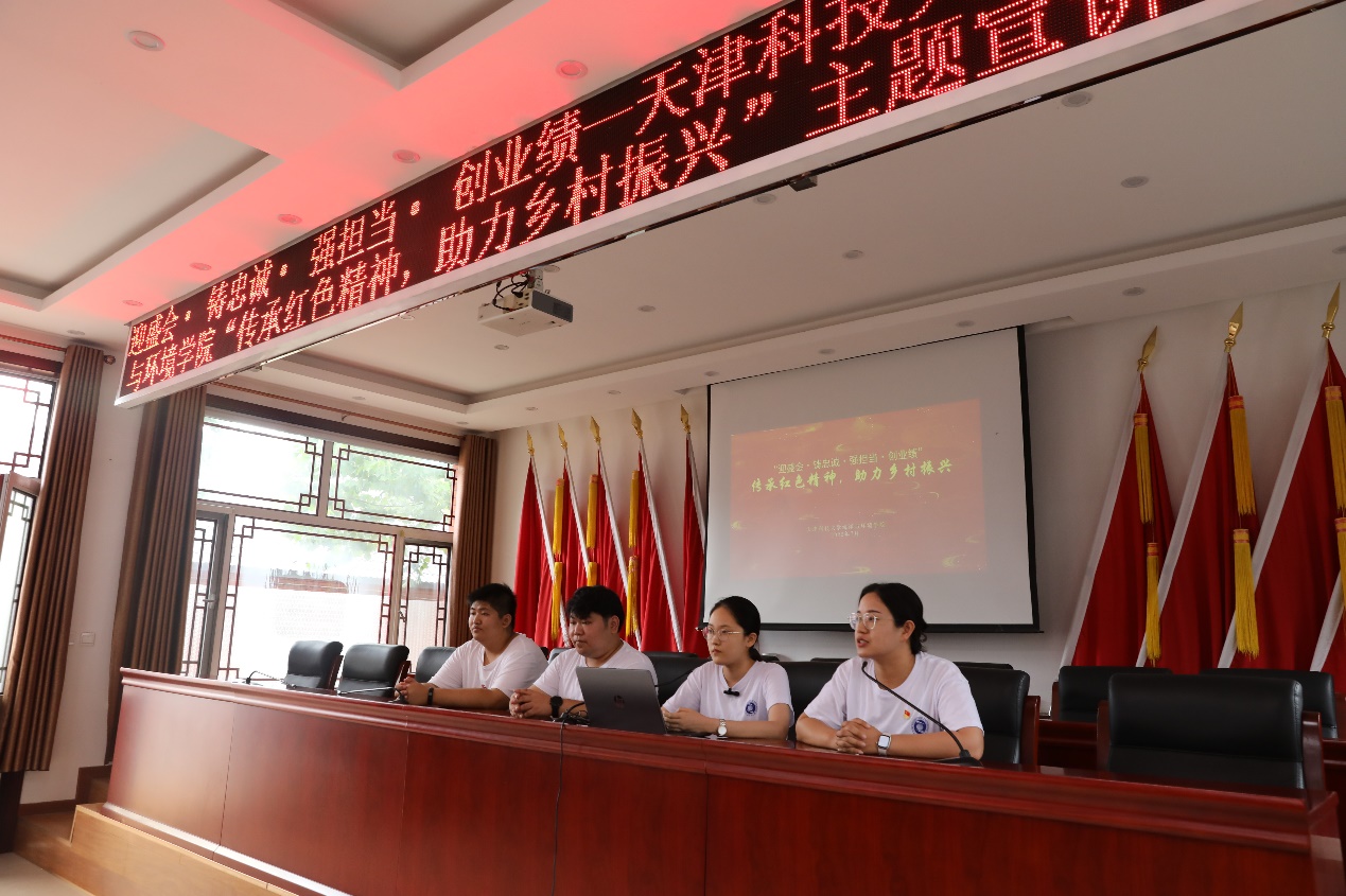 为传承红色文化,助力乡村振兴,进一步学习宣传天津市第十二次党代会精神,7月26日,海洋与环境学院暑期社会实践团队携手蓟州区下营镇人民政府开展“传承红色精神,助力乡村振兴”主题宣讲会。