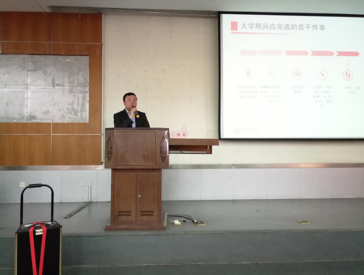 本次讲座以“当代大学生职业规划”为主题,邀请到了毕业于我校食品工程与生物技术学院2002届校友,现任中信银行股份有限公司天津黄河道支行行长的徐岩担任主讲人。