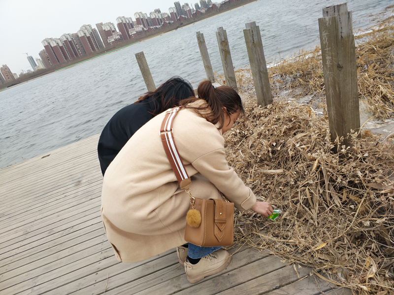活动中,面对河边的塑料袋、饮料瓶等垃圾,志愿者们一丝不苟的开始了工作,利用芦苇棍捡起近岸河水里的饮料瓶、食品包装袋等塑料废弃物,徒手拾起起岸边废弃的垃圾。随后,志愿者们和来往的市民交流河道的环境状况,并结合专业知识,向市民介绍垃圾分类方法,呼吁市民共同保护河道的生态环境,为建设美丽天津贡献一份自己的力量。在志愿者和来往市民的共同努力下,经过近两个小时的辛勤劳作,永定新河两岸的环境得到了一定改善。