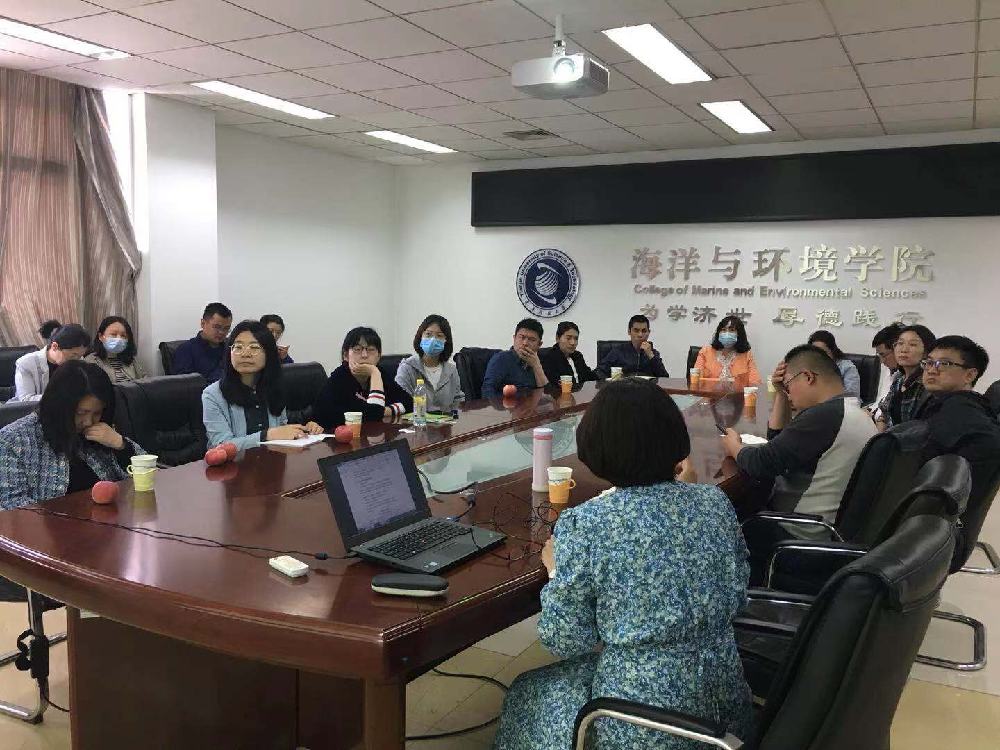 5月10日中午,在海洋与环境学院9-512会议室,学院20位青年教师和教学名师李桂菊老师、刘洪艳、教学秘书王运花共同交流讨论教学经验、过程性考核、试卷命题及相关教学管理方面的内容。