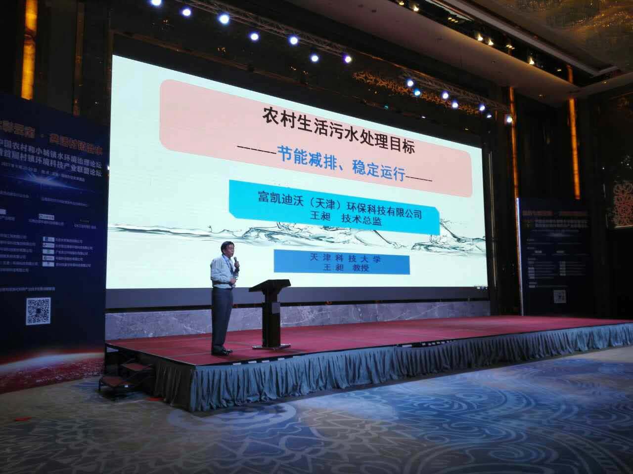 报告全面介绍了王昶教授及其科研团队十几年来开发适合我国国情的农村生活污水处理新技术新装备所取得的一系列成果和应用。2015年第五届中国农村和小城镇水环境治理论坛上,王昶教授对农村生活污水处理首次提出了分散式模式,介绍了分散式处理净化槽技术和示范工程,引起了同行专家的高度重视;2016年第六届农村和小城镇水环境治理论坛上,王昶教授介绍了具有知识产权的多台净化槽串并联归一模块化处理模式,依据农村生活污水的各自特点,开发了多户联用技术,大大地降低了一次性投资成本,而且采用归一模块化处理模式,实现了污泥零排放的目标,给实际工程的后续维护提供了很多的便捷。本次论坛,王昶教授充分展示了在农村生活污水处理过程中的一些关键技术,给环保企业带去了新的理念和技术集成,真正成为我国农村生活污水处理技术的领跑者。该项集成技术和装备已成为我国农村生活污水处理的重要组成部分,引领中国农村生活污水分散处理的退管应用,其示范工程成为了我国农村生活污水处理标杆性的示范基地,除了在天津市全面应用外,还在山东省德州市、广东省湛江市、江苏省扬州市得到了广泛的应用,充分体现了我校在农村生活污水处理的科技前沿地位。