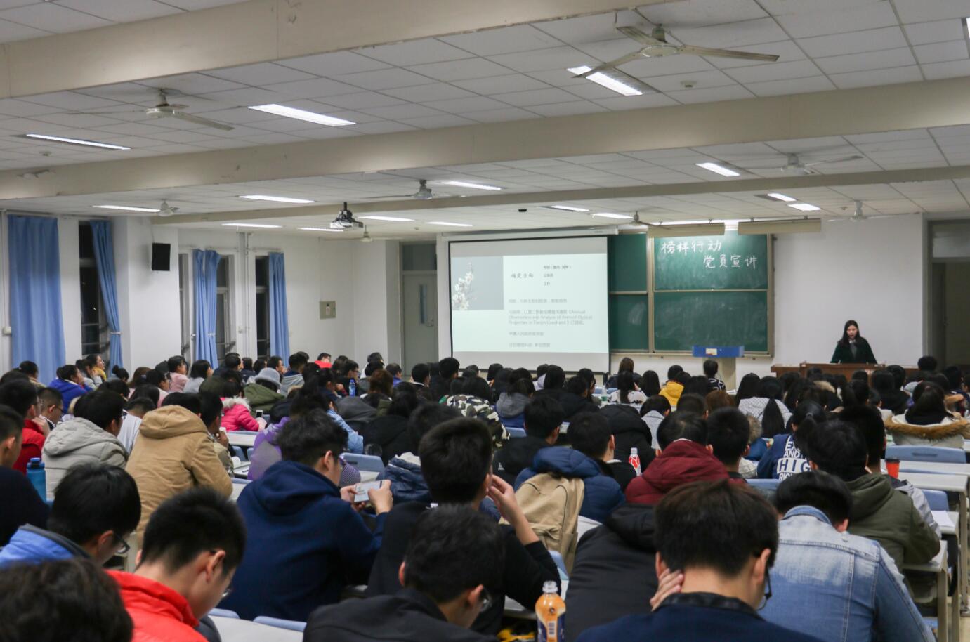 榜样的力量是无穷的,为了让大一新生以榜样为目标,更好地规划大学生活,2016年11月30日晚,海洋与环境学院在泰达中校区图书馆第十一阶梯教室开展了主题为“榜样行动之优秀党员宣讲”活动。活动邀请到了学院四个本科生党支部的优秀党员代表梁雪娇、王振、张琨、李小芳作为主讲,2016级200余名学生到场参加。