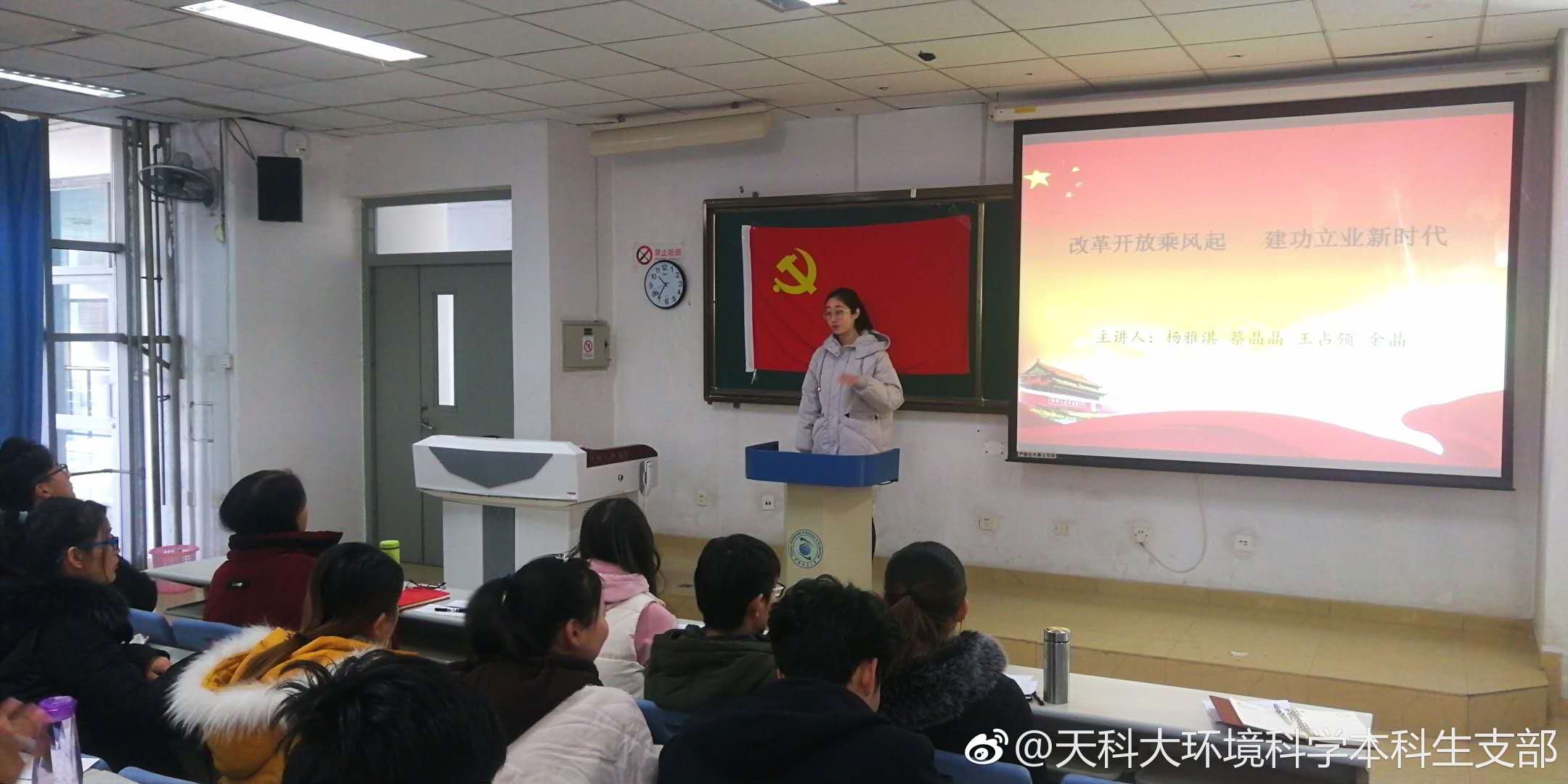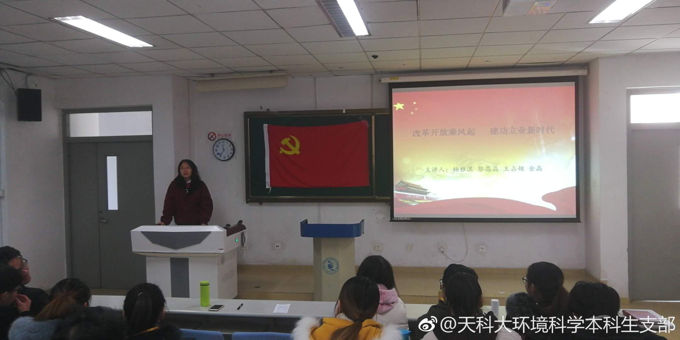 为切实坚定“四个自信”,进一步增强感恩党、感恩祖国、感恩人民的情怀,激发建功立业新时代的斗志和热情,12月29日中午,环境科学本科生党支部在泰达中校区3号楼109室进行了2018年“党员先锋讲坛”年度总决赛,本次先锋讲坛的主题为“改革开放乘风起,建功立业新时代”。