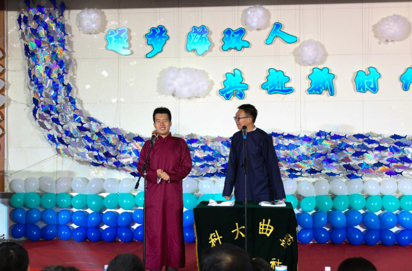 下篇“展望未来”开始之前,激动人心的抽奖环节引爆全场。随后,国标舞社的《special pleasure》以优雅曼妙的舞姿征服全场。班歌比赛冠军170522班的同学们用他们嘹亮的歌声唱出了《骄傲的少年》,向大家诠释了他们的别样芳华。小品《新闻联播》道出了校、院2017年的发展与变化,展现了海环学子敏锐的洞察力,他们积极关注发生在校、院的时事热点和辉煌成绩,“时代姐妹花”凭借诙谐幽默的演技,反映出新时代大学生良好的精神风貌,赢得了满堂喝彩。