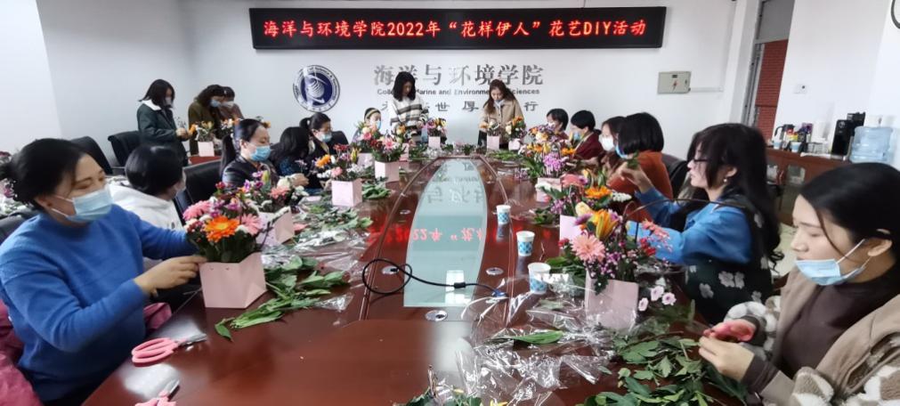为纪念第112个国际劳动妇女节,3月8日,海洋与环境学院工会在泰达中校区9-512会议室开展 “花样伊人”花艺DIY主题活动。