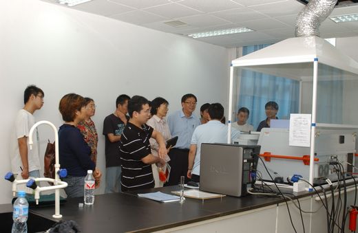 培训讲座进行了一个小时,之后,李光壁老师在海洋环境与资源监测中心实验室向在场的教师和学生们现场演示了“原子吸收”的操作使用。