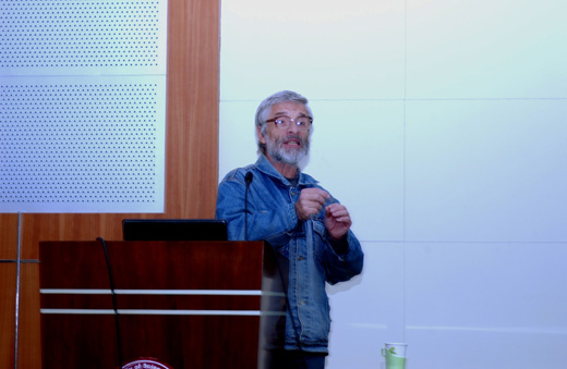 11月10日下午,来访的乌克兰科学院N.V.shadrin博士以《The Crimean hypersaline lakes: towards development of scientific basis of intergrated sustainable management》为题拉开海洋学院科技周第二场学术讲座序幕。N.V.shadrin博士为我校师生介绍了克里米亚高盐度湖泊资源及可持续开发情况。俄式英语并未给中外学者与学生带来交流障碍,广大师生交流、参与程度高涨。讲座由海洋学院院长魏皓教授主持。