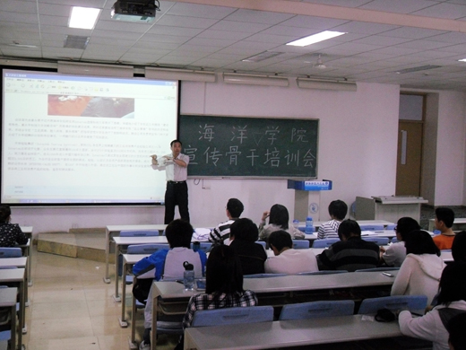5月6日中午,海洋学院在泰达校区第11阶梯教室举行了宣传骨干第二次培训。院办公室主任张越男、教学秘书王运花、辅导员王慧,以及学院各个社团新闻宣传负责同学、班级宣传委员参加了培训。