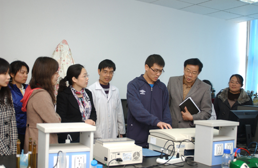 培训讲座进行了一个半小时,之后,潘光华老师在海洋生物技术实验室现场演示了“双向电脉仪”的操作使用,并和相关教师、学生进行了现场交流。