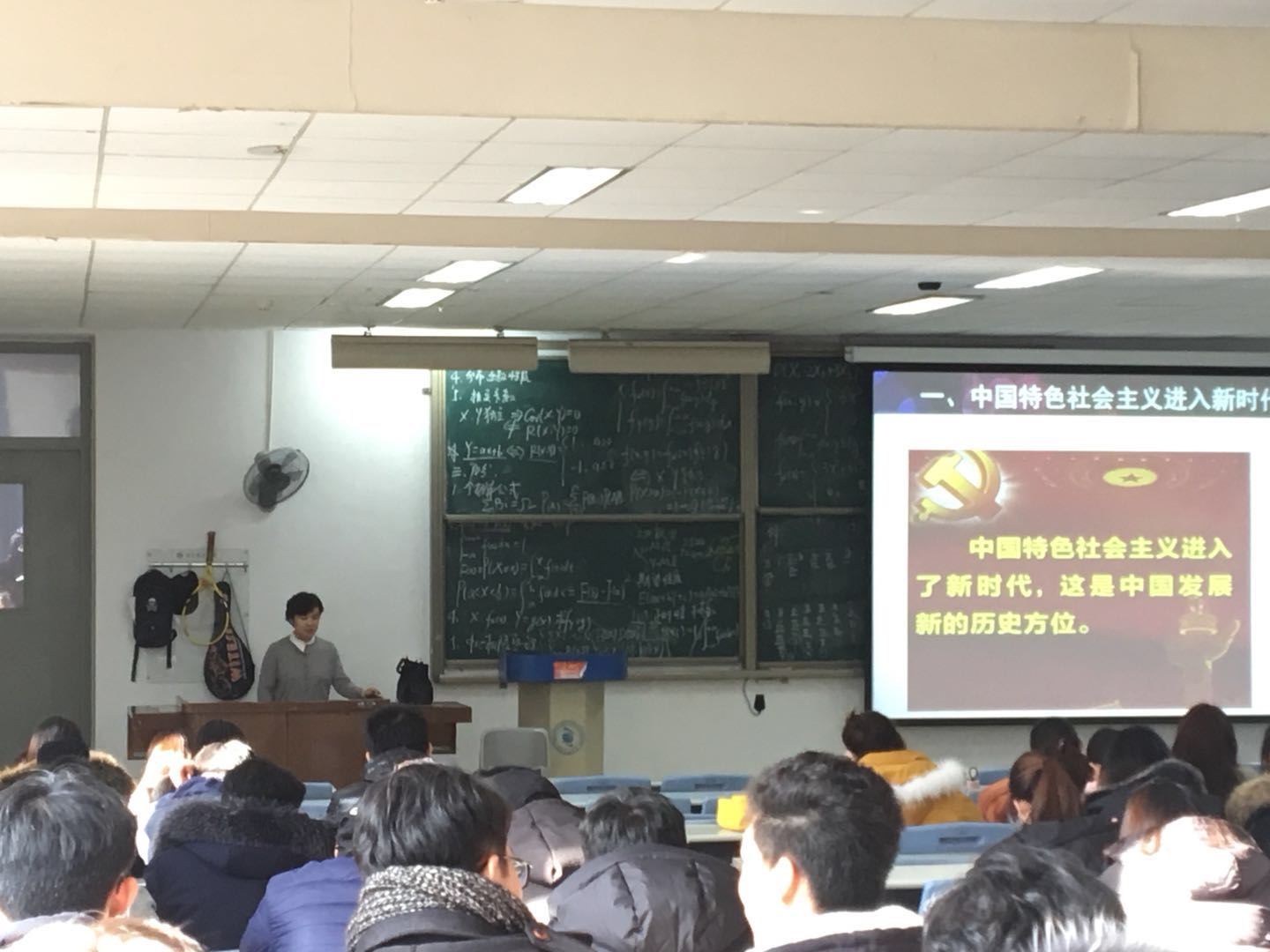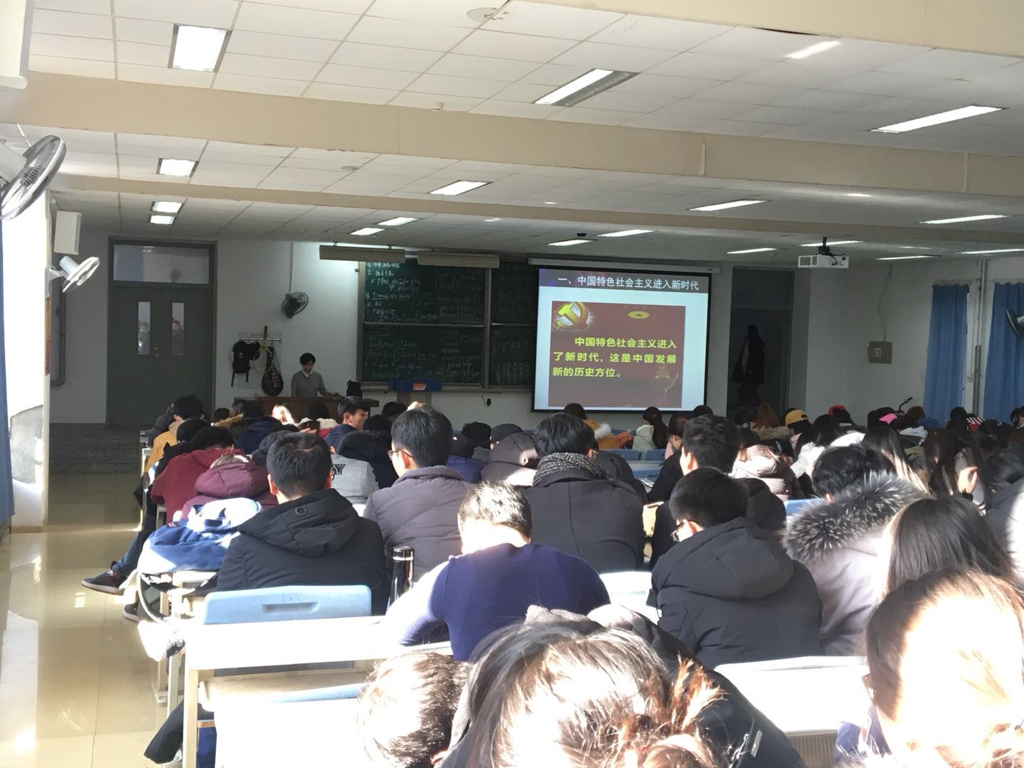 杜老师指出,习近平总书记所作的十九大报告高屋建瓴,内涵丰富,既深刻总结了党的十八大以来党和国家事业的历史性成就和历史性变革,又科学回答了新时代坚持和发展中国特色社会主义的一系列重大理论和实践问题。报告主题鲜明,始终贯穿一个总纲,就是习近平新时代中国特色社会主义思想。杜老师围绕一个"新"字,从"新时代"、"新使命"、"新思想"、"新方略"、"新纲领"、"新征程"六个方面传达党的十九大精神。并号召全体同学要深入贯彻学习十九大精神,牢记历史赋予我们的使命,坚定理想信念,以严格的标准要求自己,做新时代合格的接班人。