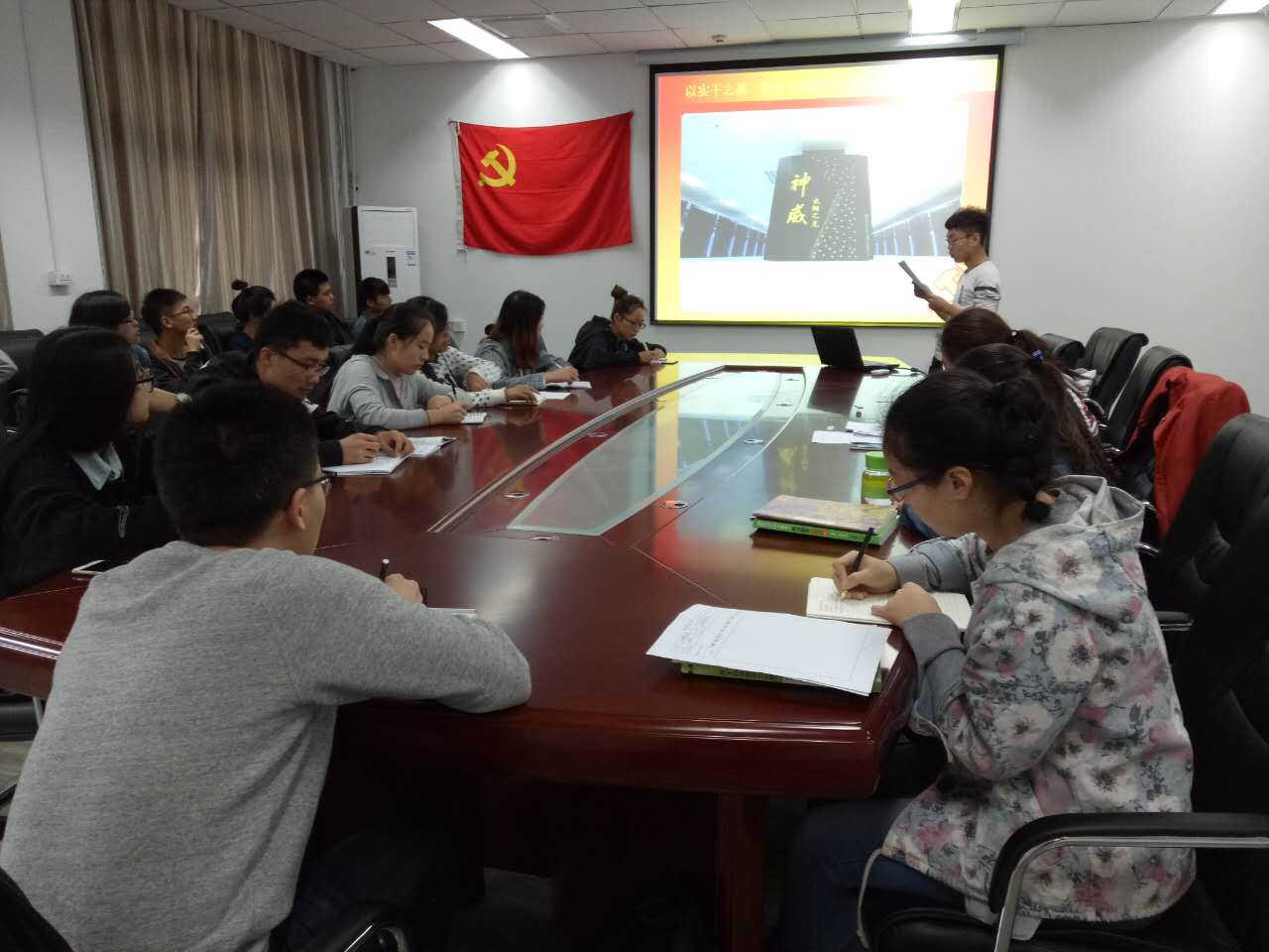10月12日上午,环境科学本科生党支部在6号楼108会议室开展了优秀党员讲党课活动,支部优秀学生党员王振结合中华人民共和国成立67周年祖国取得的伟大成就,进行了以“以实干之基,托起中国复兴之梦”为主题的党课宣讲,支部全体成员及本专业拟发展对象参加了此次活动。