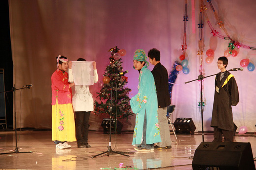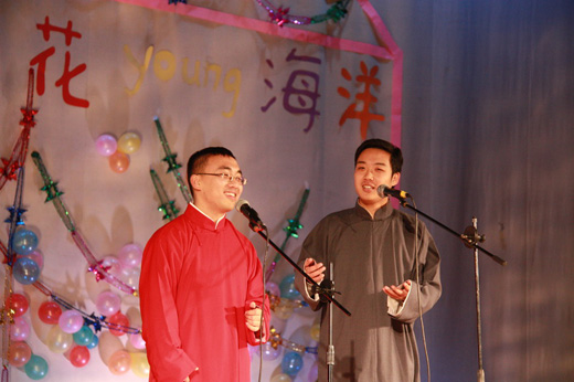 天津师范大学的侯爵、倪柏寅,友情出演了相声《报菜名》,在传统经典段子上的改良和创造,更加贴近了我们的校园生活,独特视角,灰色幽默,赢得了大家阵阵笑声和喝彩。