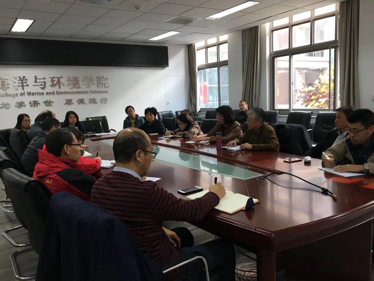 11月8日中午,海洋与环境学院在泰达中校区6号楼108会议室举行了2018-2019学年第一学期期中教学检查教师座谈会暨本科教育思想讨论会,会议由副院长李桂菊主持,副院长隋丽英、教学督导袁建军及各系教师参加。