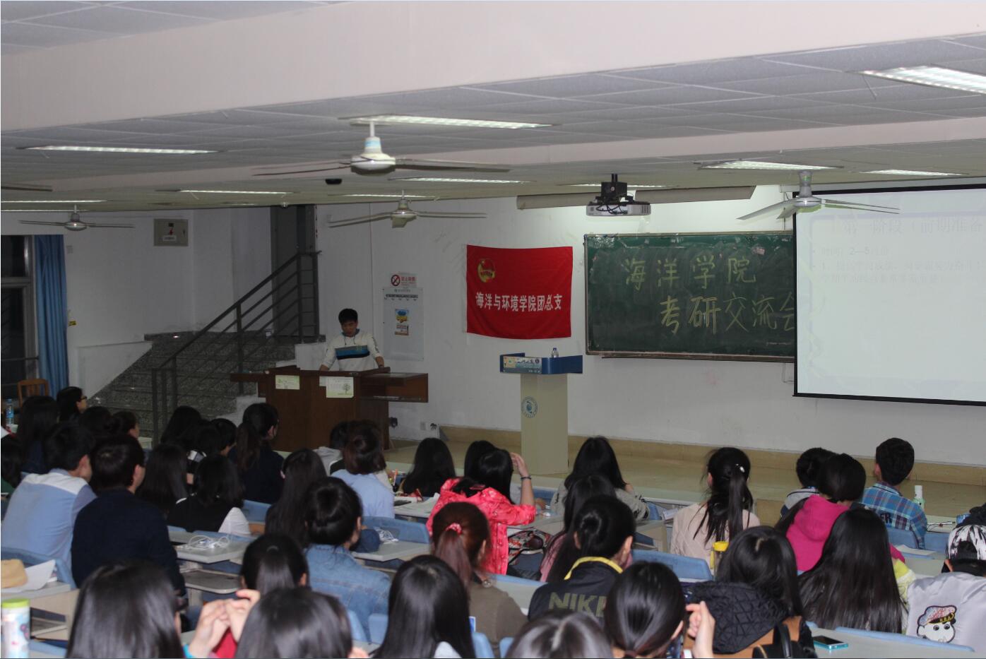 为帮**研同学们明确方向,同时为低年级同学树立榜样,4月7日晚,海洋学院团委在9号楼15阶举办了保研考研经验交流会。本次交流会邀请到六位成功考研的2012级优秀同学分享他们的考研经验及心得体会,现场吸引了百余名同学参会。