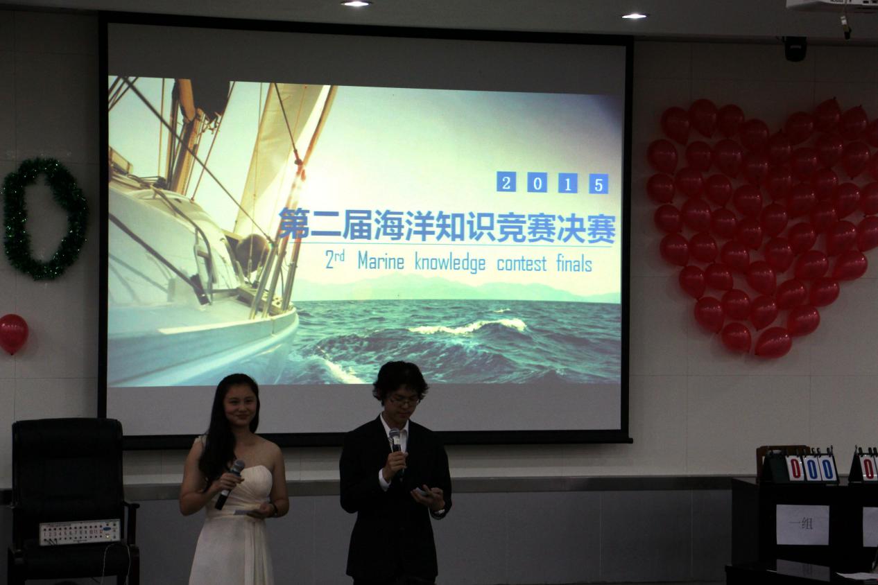 2015年5月20日晚,由海洋学生会主办的海洋知识竞赛决赛于第二报告厅隆重举行。参加本次比赛的嘉宾有:海洋学院党委书记唐娜教授、副书记金峰老师、海洋科学系主任孙军教授、海洋技术系主任赵亮教授、副主任郑小慎教授 、团总支书记杜颖华老师,以及各年级辅导员及各学院的学生会主席。