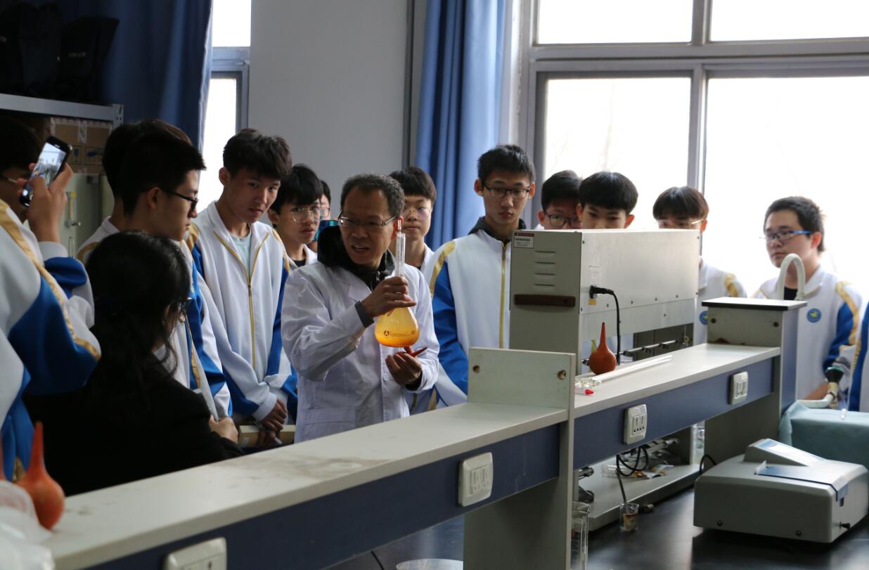 3月27日下午,由梅江中学校长和两位教师带领的高一、高二66位学生来访海洋与环境学院。学院为同学们安排了我院四个专业的专业介绍,请同学们走进实验室体验了部分实验,了解了从稻田画绘制原理到数据提取及专业特色。