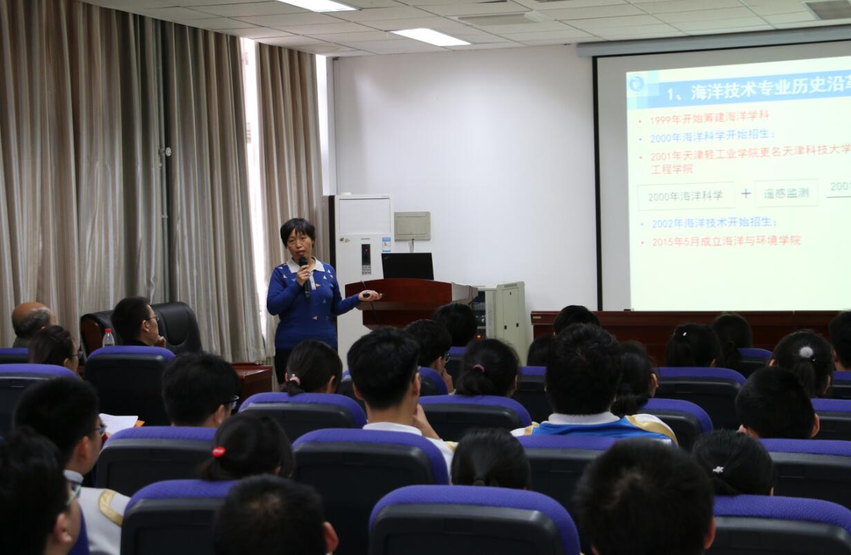 随后,海洋技术系主任郑小慎教授向同学们介绍了海洋技术专业特色、发展方向、学习内容、学生获奖、考研保研的高校以及院所;用已经完成的宝坻区稻田画项目和汶川地震为例,为同学们介绍了专业软件ArcGIS的功能及操作,演示了如何提取、加载8.12爆炸现场不同区域受到的危害,使同学们对海洋技术专业知识服务于社会区域发展所起到的重要作用有了详细认识。